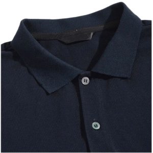 Short sleeved polo shirt. 1?1 rib flat knitted collar. 1?1 rib flat knitted cuffs with Elastane. Reinforced placket with 3 matching colour buttons.